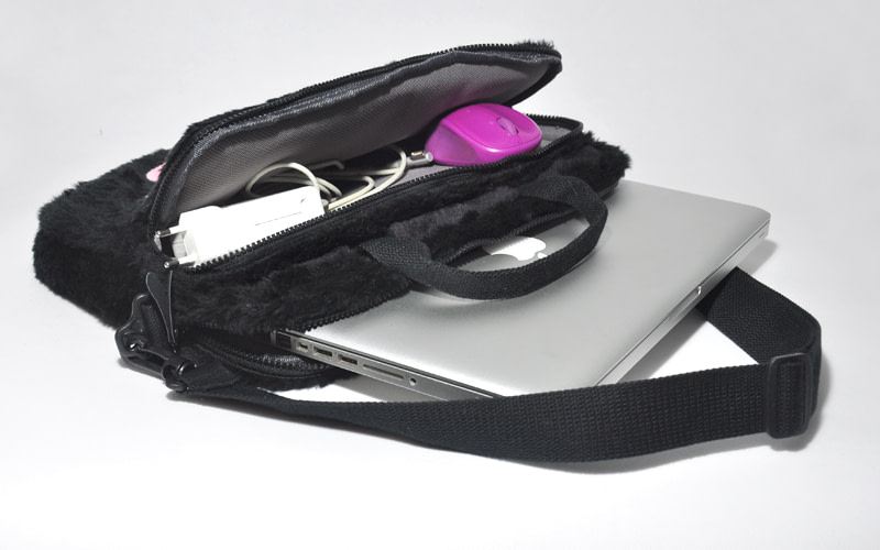 This monster can exactly fulfill your needs with its main compartment for laptop and front pocket for laptop accessories, books and more. It promptly organizes your goodies for any occasion. Also can be worn for your fun activities and everyday sling bag. The handmade monster’s expressions are made from synthetic leather, stitched, glued on fur.